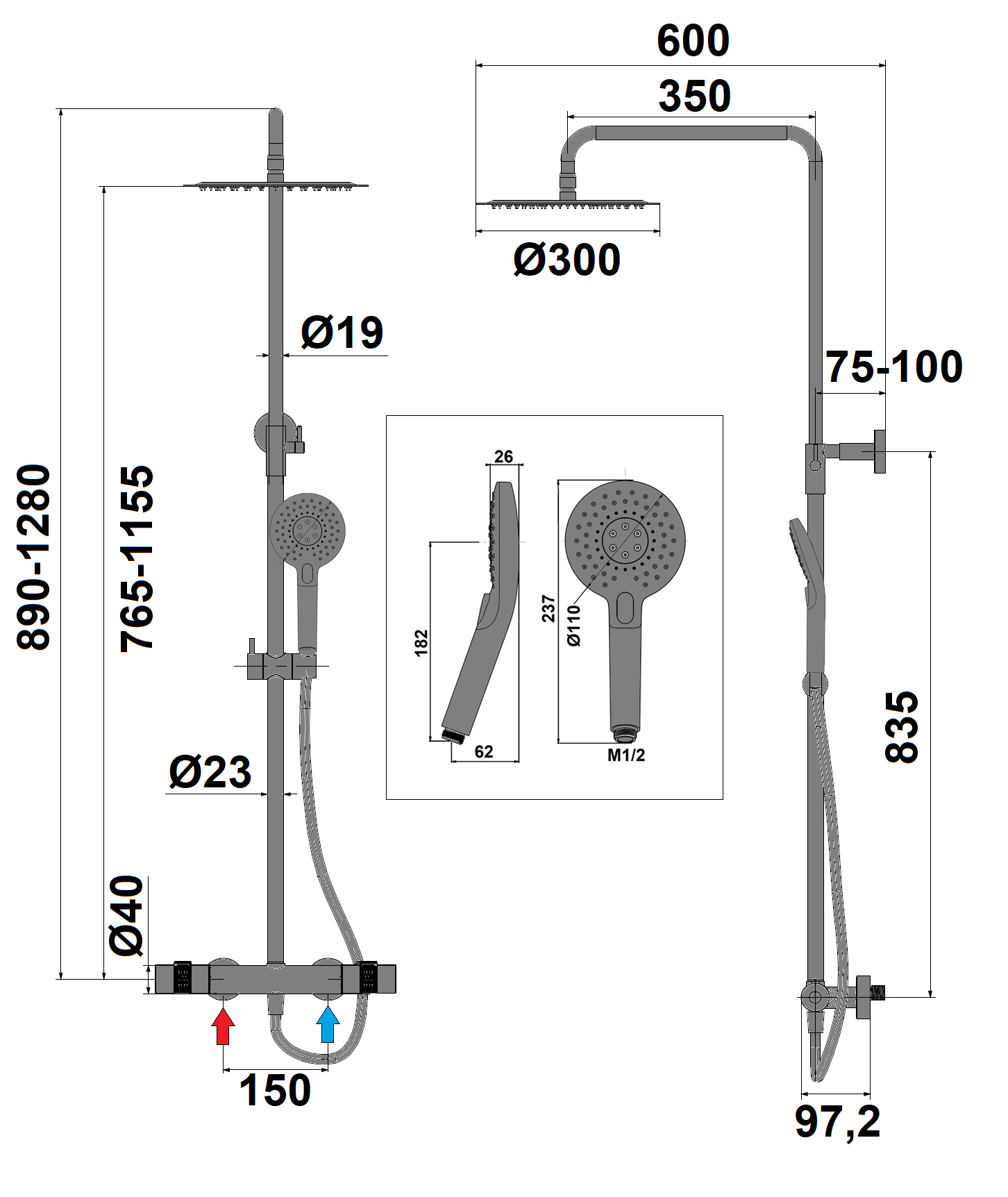 Colonne de douche thermostatique