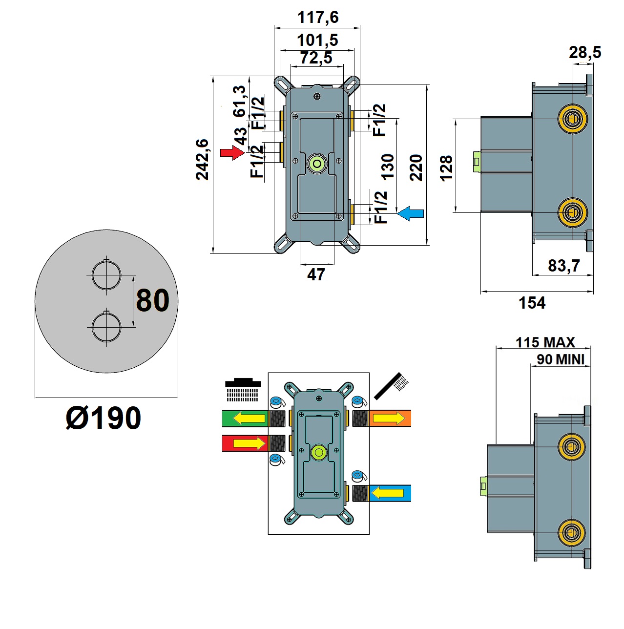| Profondeur d'encastrement mini | 90 (mm) |