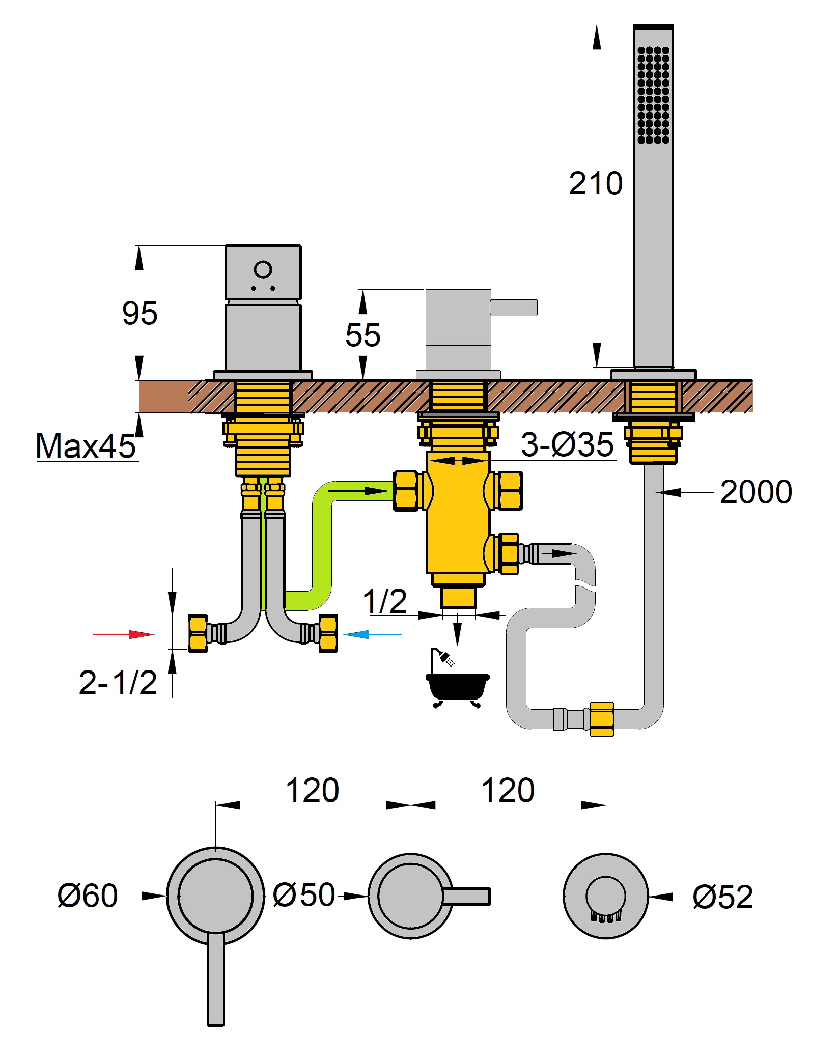 0 avis pour Mitigeur B/douche 3 Trous Sur Table Ortence Pvd Bronze Cuivre