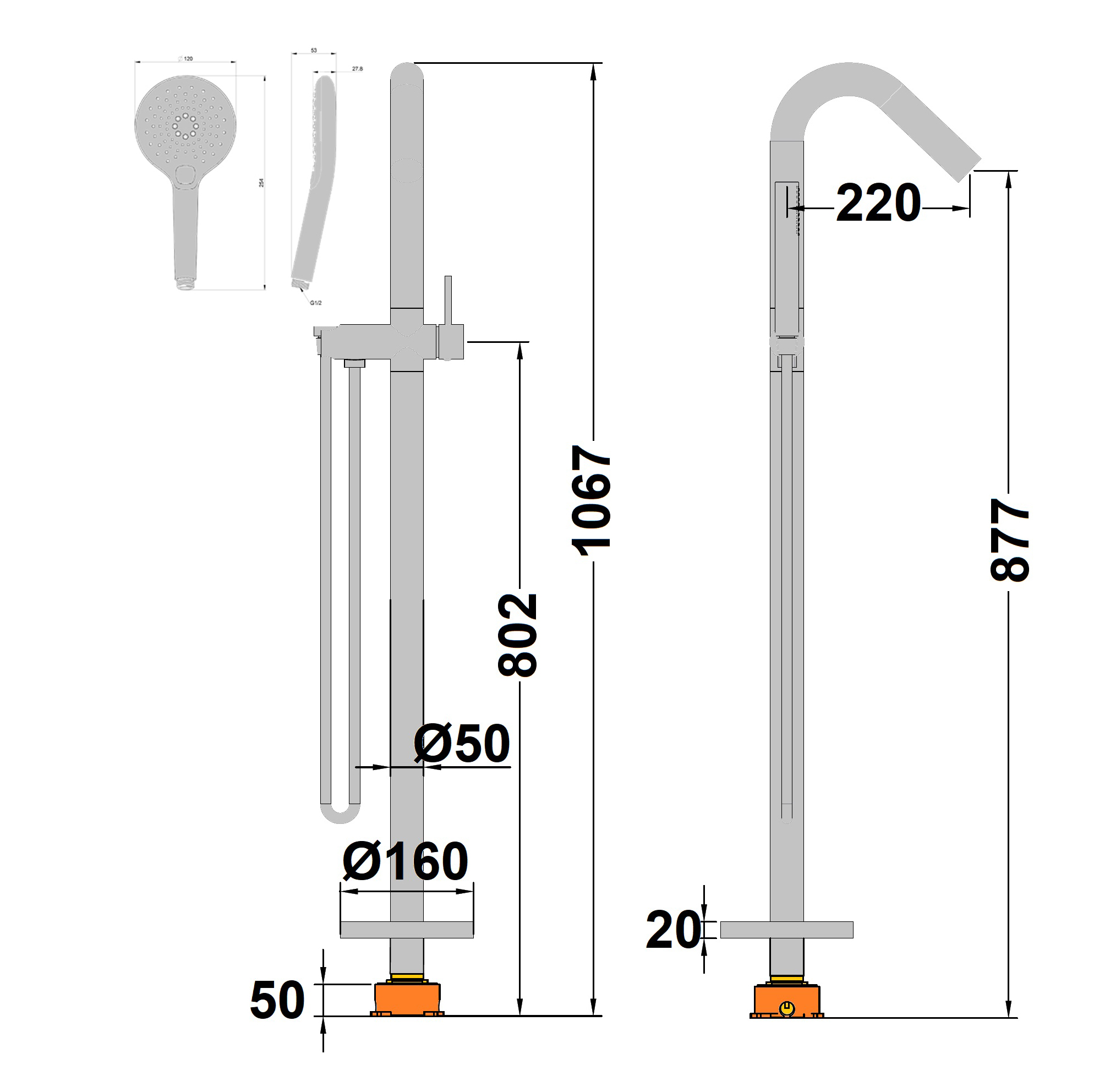 Hauteur sous bec : 877 mm