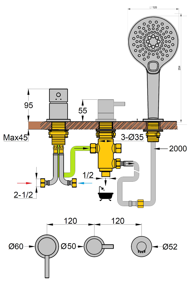 Mitigeur Bain Douche Sur Table Sans Bec 3 Jets Cox