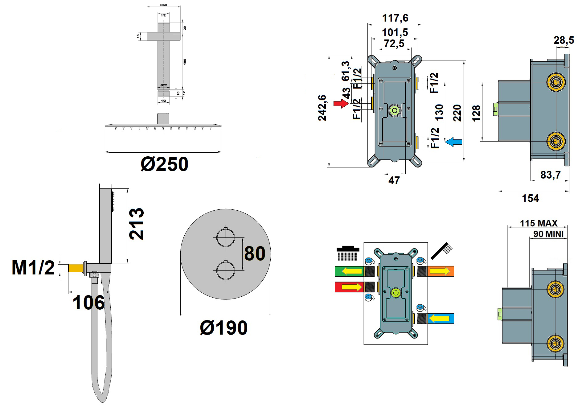 Ensemble Douche Thermostatique Avec Plafonnier Cox