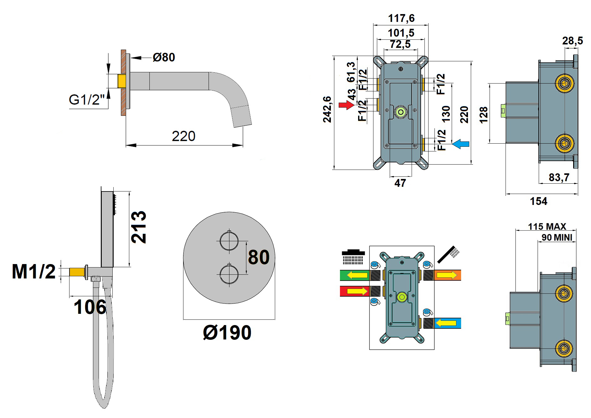 Profondeur d’encastrement : 90 mm - 115 mm