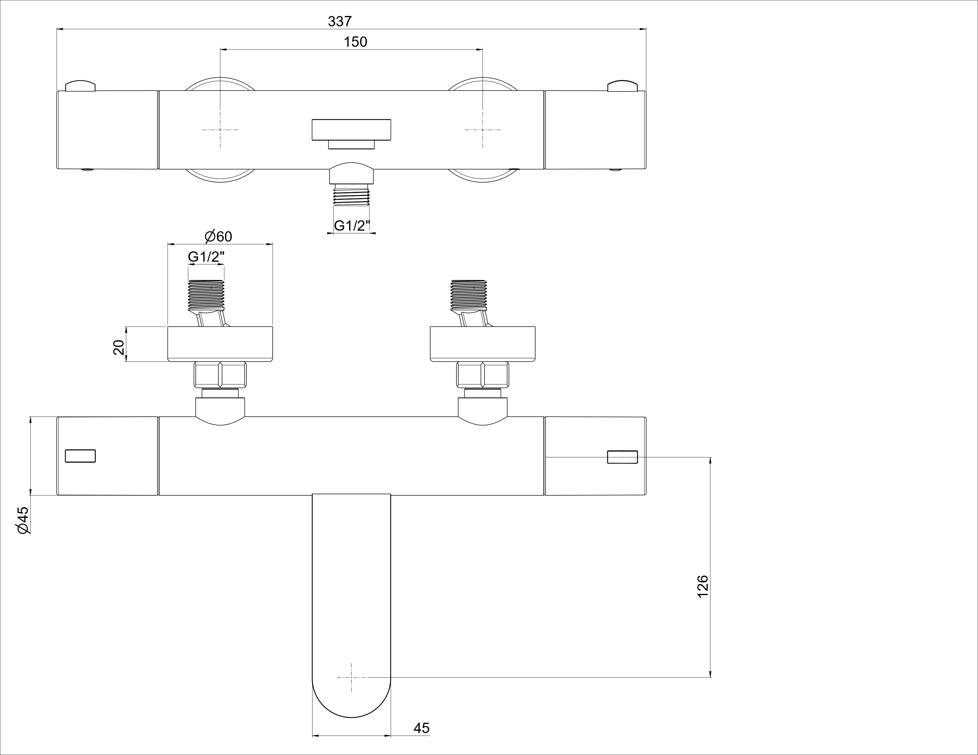 Entraxe : 150 mm +/- 20 mm