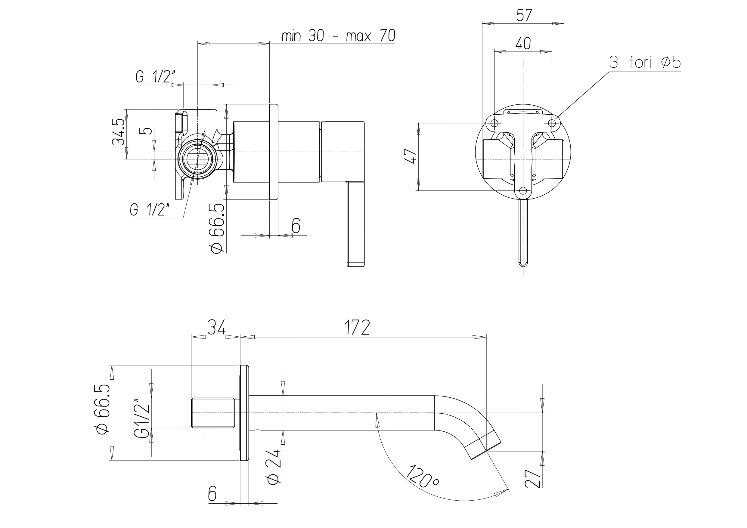 Profondeur d'encastrement : 30 mm mini - 70 mm maxi