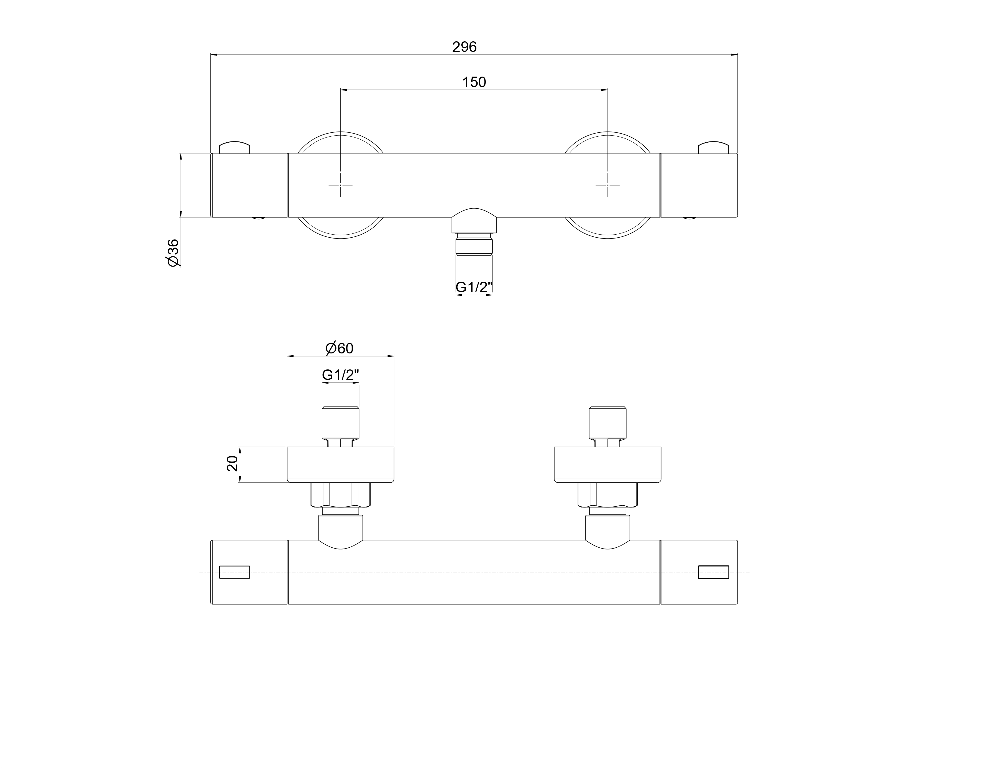 Entraxe : 150 mm +/- 20 mm