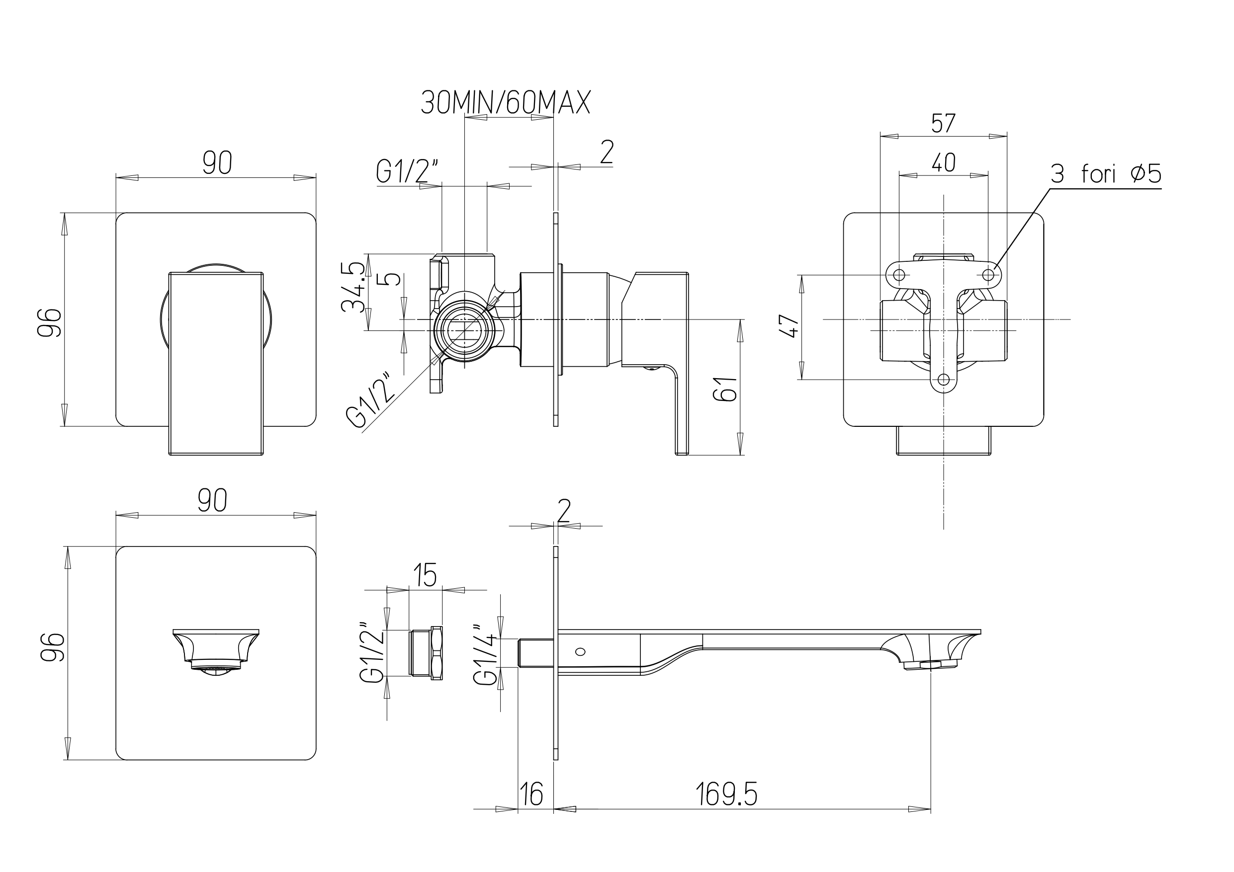 Profondeurs d'encastrement : 30 mm mini - 60 mm maxi