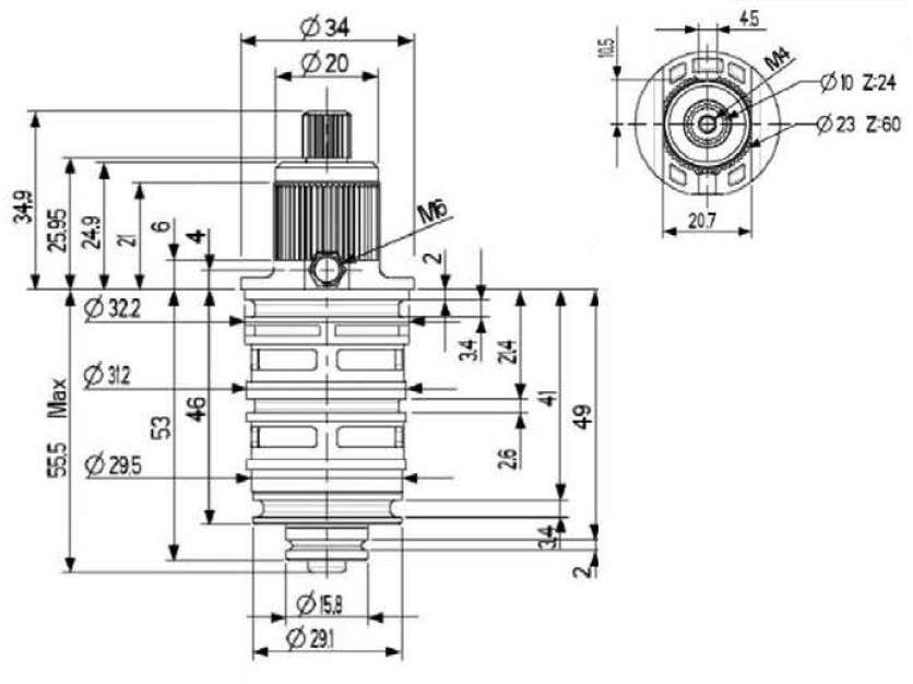 Cartouche Thermostatique Nf C2 Avec Empreinte Filete Pour Vis M6